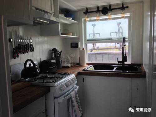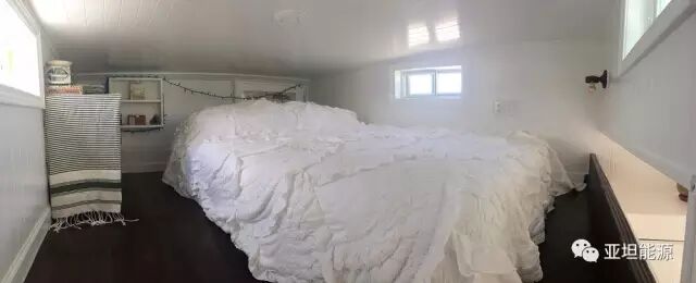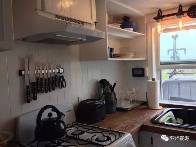 車輪上的這個(gè)離網(wǎng)型太陽能房屋其實(shí)類似于房車,基礎(chǔ)主體結(jié)構(gòu)材質(zhì)為木材,整體是在雙軸拖車上,房屋是絕緣并且封閉的。整個(gè)微小太陽能房屋有一個(gè)多功能的客廳(它可以作為辦公室、藝術(shù)工作室等)、冰箱、廚房、烤箱、淋浴、衛(wèi)生間、睡覺的閣樓。