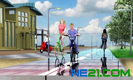 荷蘭應用科學研究組織(TNO)與北荷蘭省、英泰克公司和歐姆斯艾文紅公司合作,提出一種新奇的方法來收集太陽能,這種方法不僅可以鼓勵人們使用無排放的交通工具,而且可以產生太陽能:建設太陽能自行車道。