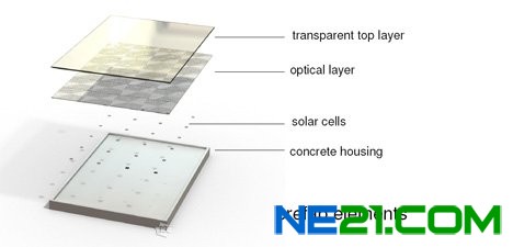 這些水泥上面覆蓋著結晶狀的硅太陽能電池