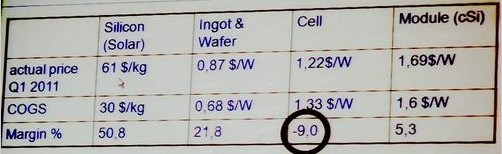 2011年第一季度,晶硅和硅片生產商將保持較高利潤率,毛利率分別為50.8%和21.8%;但太陽能電池生產商將受承壓,毛利率為-9%。iSuppli認為,太陽能電池生產商目前的局面將難以扭轉,除非能夠繼續接下長期訂單。