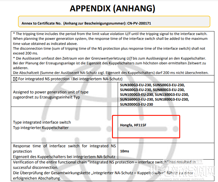 然而,德國博主拆機發現德業股份生產的微逆在并網之后并沒有像其他微逆那樣產生一聲嗶~的聲音。于是博主拆機之后發現電路板上根本沒有繼電器!再去反查該款微逆認證上關于VDE4105的認證上面很明確地寫了繼電器用的是hongfa。