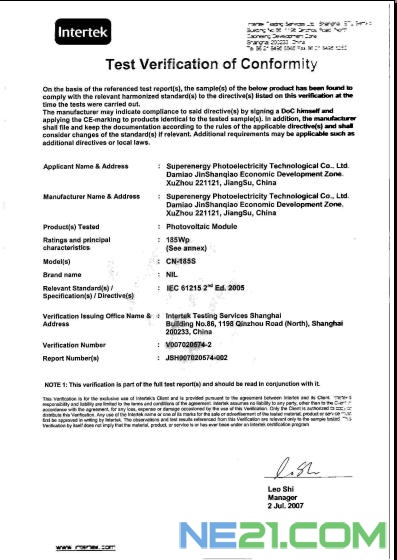 | 發(fā)證機(jī)構(gòu): | Intertek Testing Services Ltd., Shanghai, ETL Semok | 發(fā)證時(shí)間 : | 2007-07-02 |