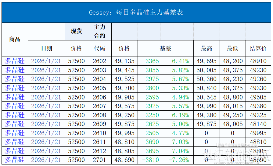 今日硅料價格整體維穩,N型料主流價格在50-56元/公斤,均價52.5元/公斤。N型顆粒硅主流價格在47-51元/公斤,均價50元/公斤。國產復投特級硅料主流價格在36-44元/公斤,均價43.5元/公斤,國產致密特級硅料主流價格在35-43元/公斤,均價42.5元/公斤。全球多晶硅料主流價格在19-22元/公斤,均價20元/公斤。