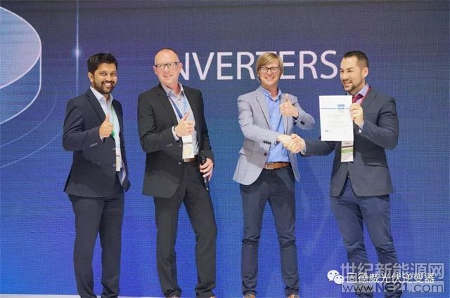SNEC展上,固德威榮獲德國權(quán)威調(diào)研機(jī)構(gòu)EuPD Research 頒發(fā)的“2019澳大利亞頂級逆變器品牌大獎(jiǎng),EuPD Research合伙人Parag BhamreLeo GanZ親臨SNEC固德威展臺(tái)頒獎(jiǎng),并表示祝賀。