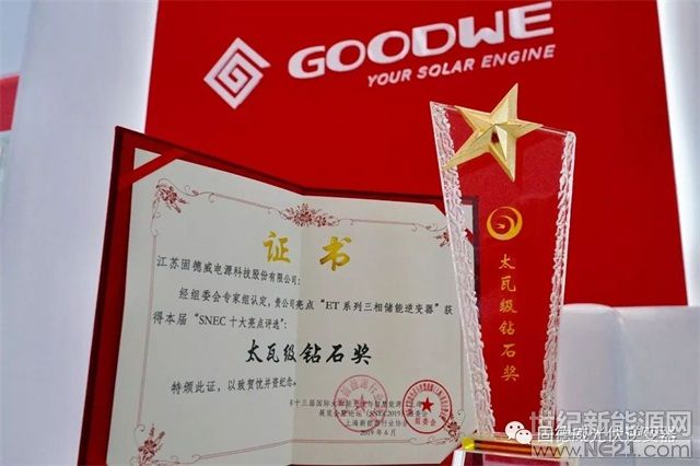固德威儲能逆變器斬獲太瓦級鉆石獎(jiǎng),2019SNEC完美收官!