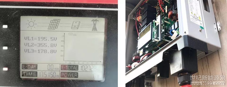 處理結(jié)果:現(xiàn)場(chǎng)發(fā)現(xiàn)逆變器側(cè)沒(méi)有接地,實(shí)測(cè)零地電壓為5.8~9.0V,把配電箱里的接地排進(jìn)行接地處理,測(cè)得零地電壓維持在0.001V,機(jī)器重啟正常。