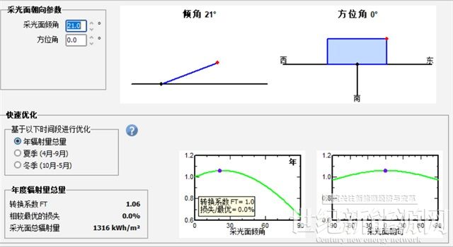 還可以進行平面和最佳傾角發電的對比,譬如無錫水平總輻照量為1244.7 kwh/m2,最佳傾角輻照量達到1316 kwh/m2,通過計算可知,最佳傾角比水平理論發電量約提升為 5.7%。