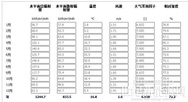 利用PVsyst里Meteonorm(1991-2000)氣象數據,得到下列水平和最佳斜面的太陽能輻照數據。