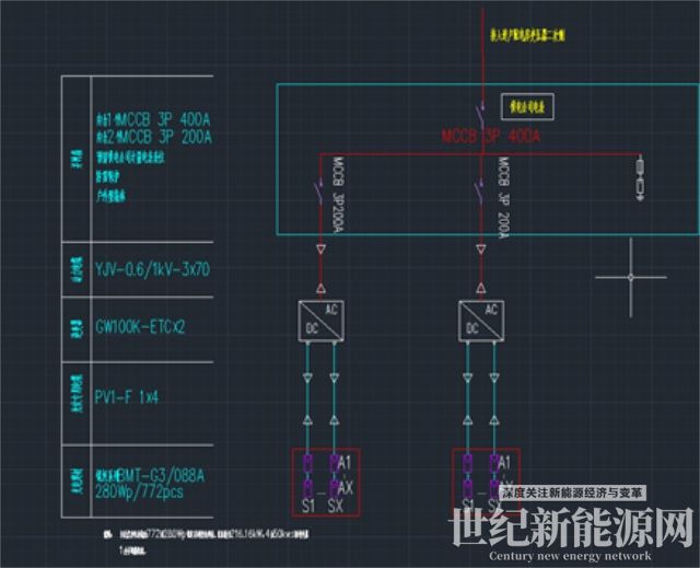 工業(yè)并網(wǎng)點為380V,朝向基本一致;光電建材總功率約為216.16kW,可選擇技術(shù)成熟、轉(zhuǎn)換效率高的GW100k-ETC的逆變器2臺,容配比為1.08。符合項目地區(qū)最佳容配比。