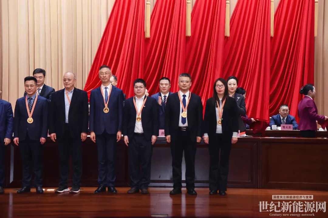 林洋能源智能板塊總經(jīng)理任勁松(右二)代表企業(yè)上臺領(lǐng)獎