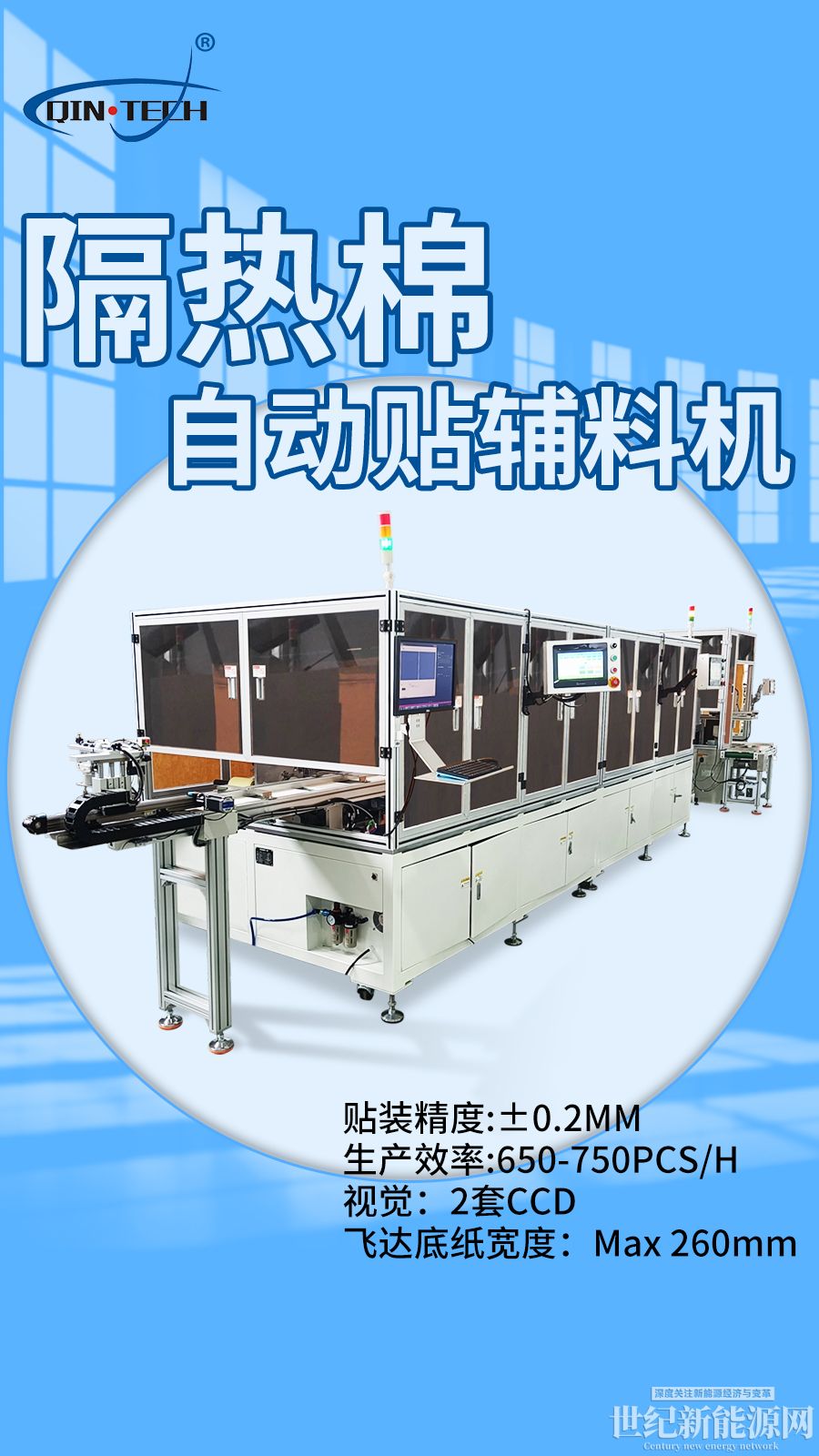 是秦泰盛公司根據客戶要求定制的多工 位貼輔料機設備,該設備使用滾壓貼合工藝和翻轉機構可以實現膠板正反面輔料貼合,吸料板從飛達上取料, 底部相機拍照,伺服電機旋轉補嘗角度等功能,具有速度快、節省人工的特點。