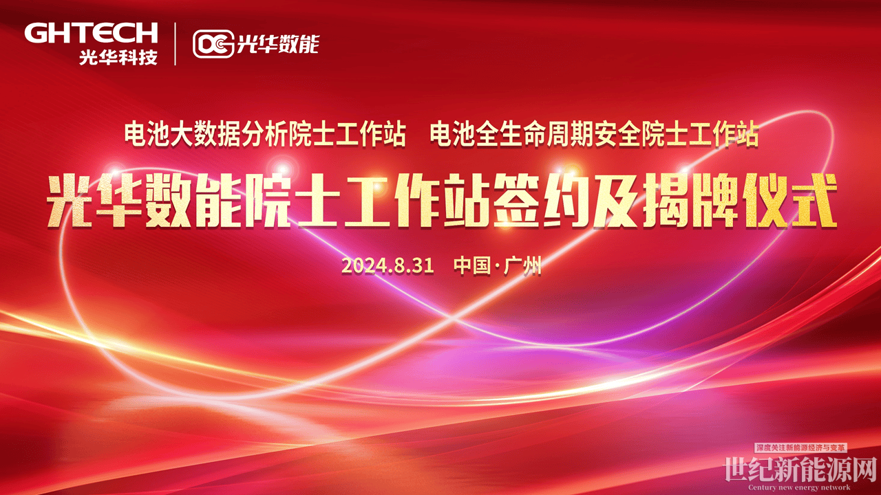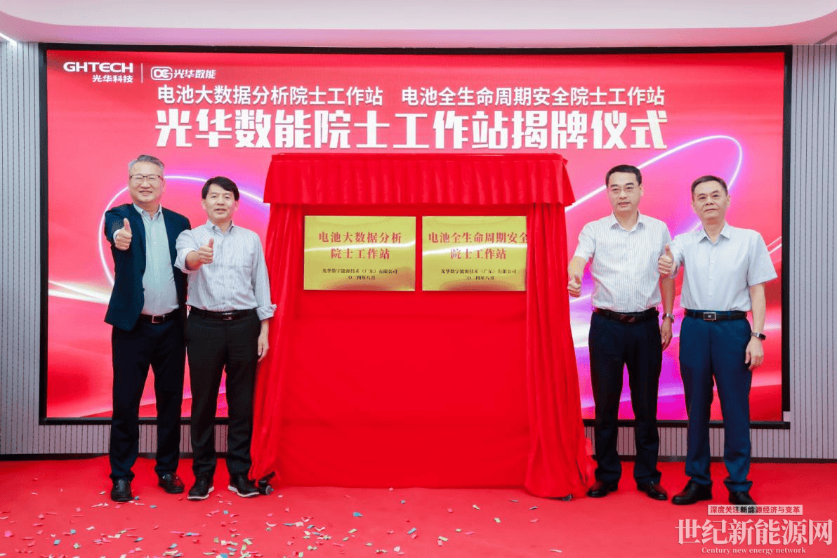 8月31日,秋日暖陽、熠熠生輝,光華數能迎來公司發展的重要盛事——“電池大數據分析院士工作站”與“電池全生命周期安全院士工作站”簽約及揭牌儀式在廣州圓滿舉行。這一重大合作,不僅標志著光華數能在儲能安全及大數據分析方面邁出了堅實的步伐,公司進入發展新階段,也預示著光華數能在加速形成新質生產力、構建行業影響力與國際創新競爭力上取得重要進展。當天,董勤喜院士、王振波院士,光華科技董事長陳漢昭,光華數能董事長鄭俠,光華科技國家企業技術中心主任劉彬云,光華數能董事莊勝加等高層領導,以及行業專家、嘉賓與公司骨干成員共聚一堂,共同見證了這一重要時刻。