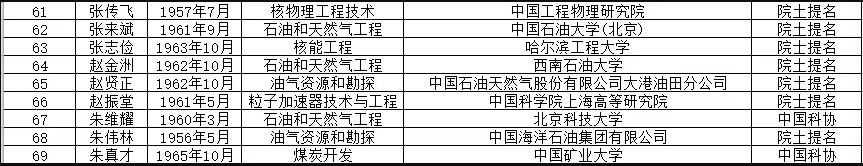 以下為華夏能源網整理的能源與礦業工程學部69名候選人名單:
