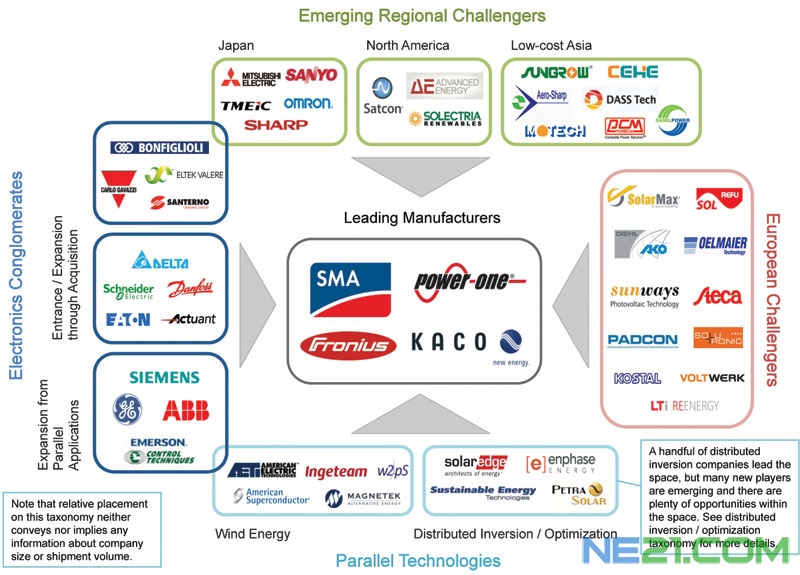 當光伏技術不斷發展以及可融資性要求,歐洲幾大領先逆變器供應商開始發現,全球需求量正從國內市場轉移至北美和亞洲等新興光伏市場。未來幾年,全球需求量的擴張將促使競爭的加劇,不求多元化發展的逆變器廠商的增速將有所放緩,同時這為美國和亞洲逆變器廠商帶來新的機遇。