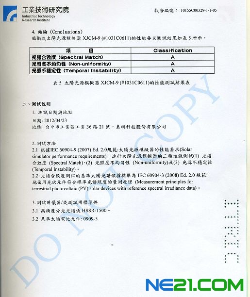 陜西眾森光伏XJCM-9率先獲得臺灣工研院AAA認證