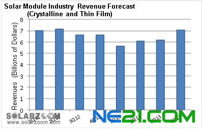 據預計,到明年第一季度光伏組件產業營收將觸底反彈。2013年第四季度,全球組件營收額將再次超越70億關口。而2010年第三季度和第四季度組件營收超過100億美元。盡管如此,市場好轉將有助于最具競爭力的供應商在2013年下半年盈利水平顯著上漲。(編譯:陶蓓華)