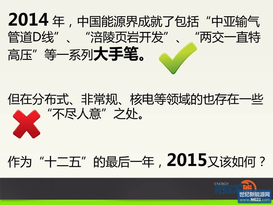 【無所不能 圖文|笑陽】12月25-26日,全國能源工作會議在北京召開,為2015年能源工作定調。本次會議極其低調神秘,據了解只有《新聞聯播》和新華社做了報道。不過從會后放出的信息來看,硬料還是不少的,值得好好學習。