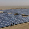 國投電力在2009年12月30日先期并網(wǎng)發(fā)電的1兆瓦光伏電站,全部并網(wǎng)后占地面積將是眼前的10倍大,但盡管如此,在一望無際的大漠中也顯得微不足道。