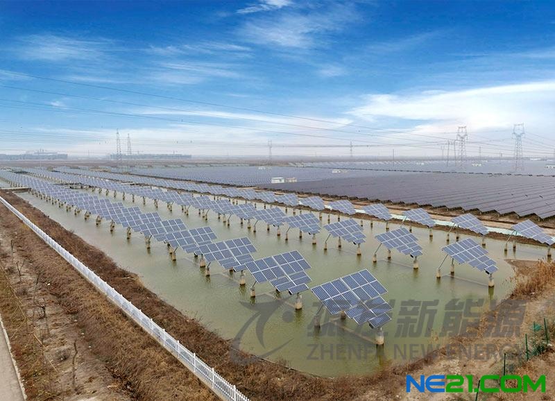 5、國內首個集晶硅、非晶硅、跟蹤系統、高倍聚光于一體,在水面建設的自適應跟蹤式光伏電站。