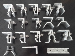 江陰聚鑫能源科技有限公司根據眾多彩鋼瓦廠房屋頂的彩鋼瓦波峰形狀設計出不同的鋁合金夾具。夾具類型有:角馳型夾具(820/760)、直立鎖邊型夾具(470/475)、巴特勒夾具(MR24)等